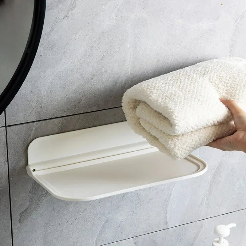 Foldable Storage Rack In Bathroom, Wall Mounted Towel, Clothing, Mobile Phone, Skincare Product Storage Rack In B